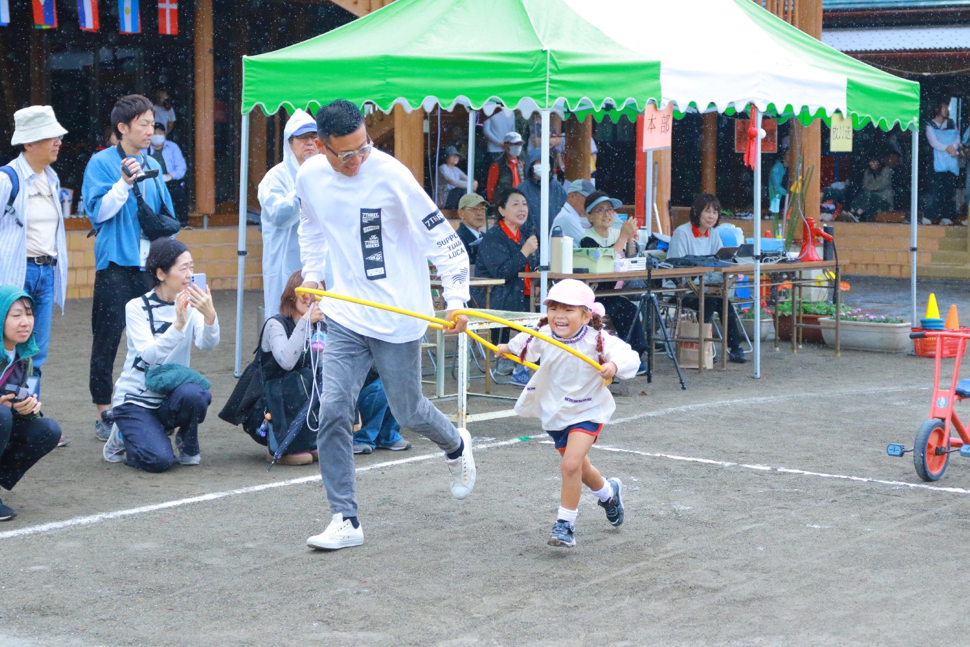 雨が止んだタイミングでプログラム再開、本部は終始雨雲レーダーとにらめっこしながら、プログラムの順番を変更したりと対応に追われ、