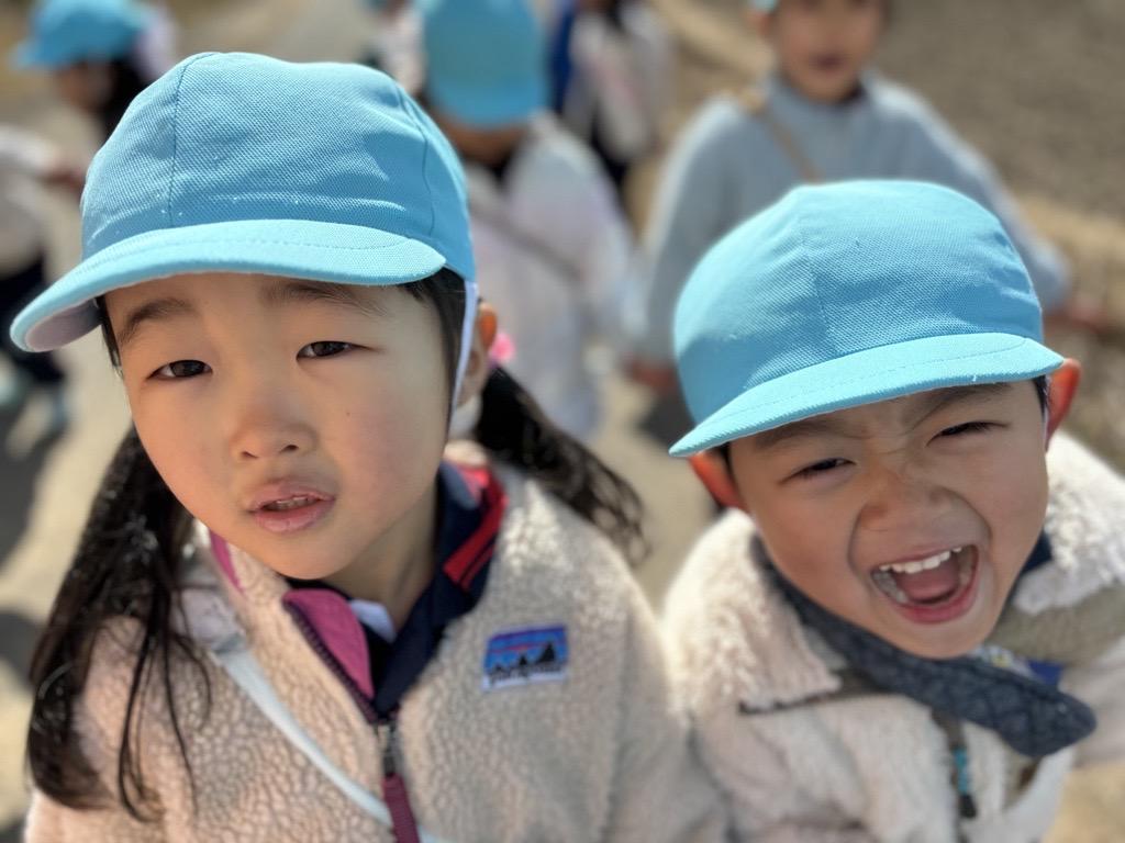 道路の端にひっつき虫を見つけ、『ちくちく爆弾に気を付けて~!』と話し合う姿が可愛らしかったです☺❤