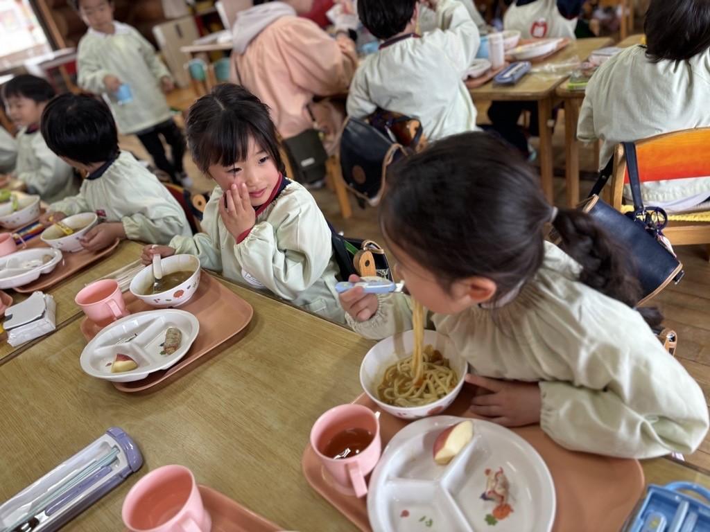 今日はゆり組(年長クラス)とれんげ組(年少クラス)のおともだちが一緒に給食を楽しみました☺♪