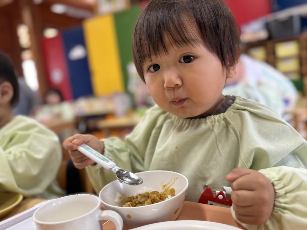 今日から一日保育になり、新入園児のおともだちにとって初めての給食です🍚