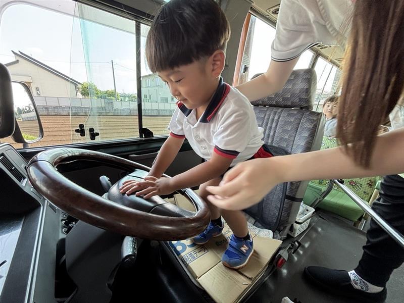 ”一人で車やバスに取り残され、危険なときに助けを呼ぶ方法”としてクラクションを鳴らすこと、音がならない時はおしりで押したり、水筒などのモノを使って鳴らすなど、たくさんの方法を子どもたちと再確認することができました♪