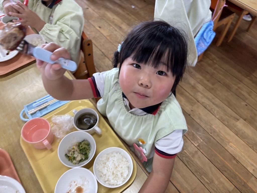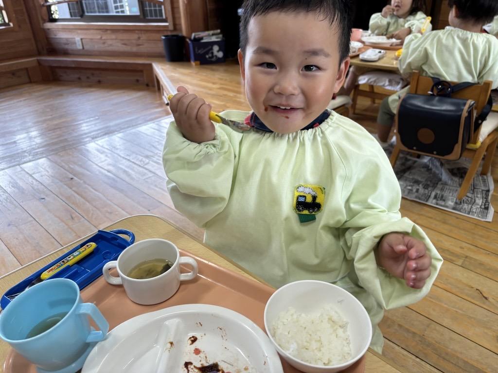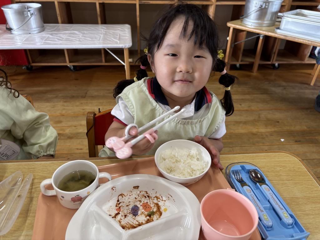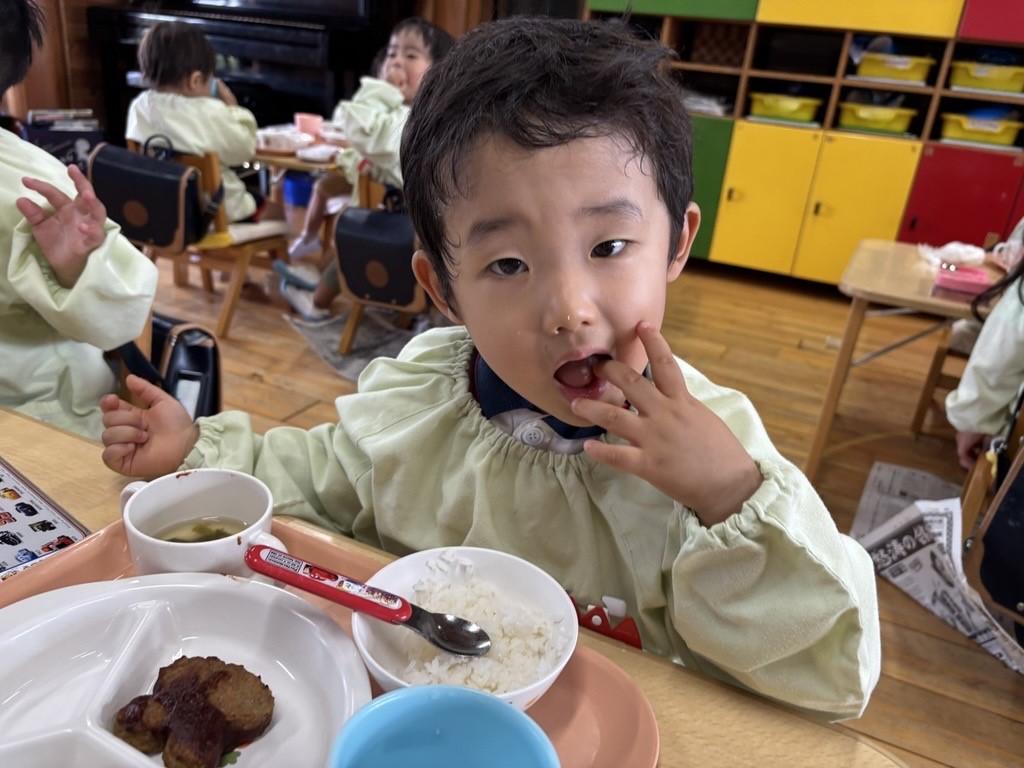 『いただきます!』の元気なごあいさつの後、『うさぎの耳から食べたよ★』『私はほっぺから~💛』と笑い声が広がります☺❤
