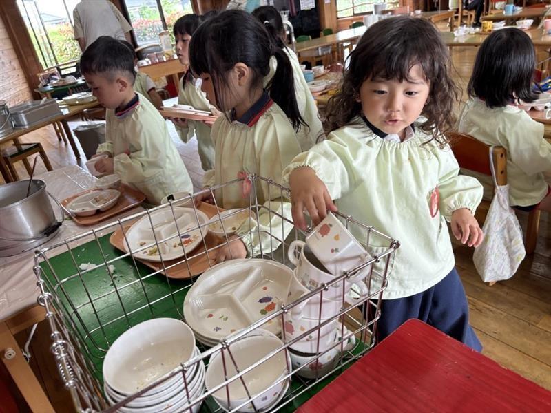 秋の恵みに感謝して、『ごちそうさまでした』と手を合わせ、自分の食器を片付けます★