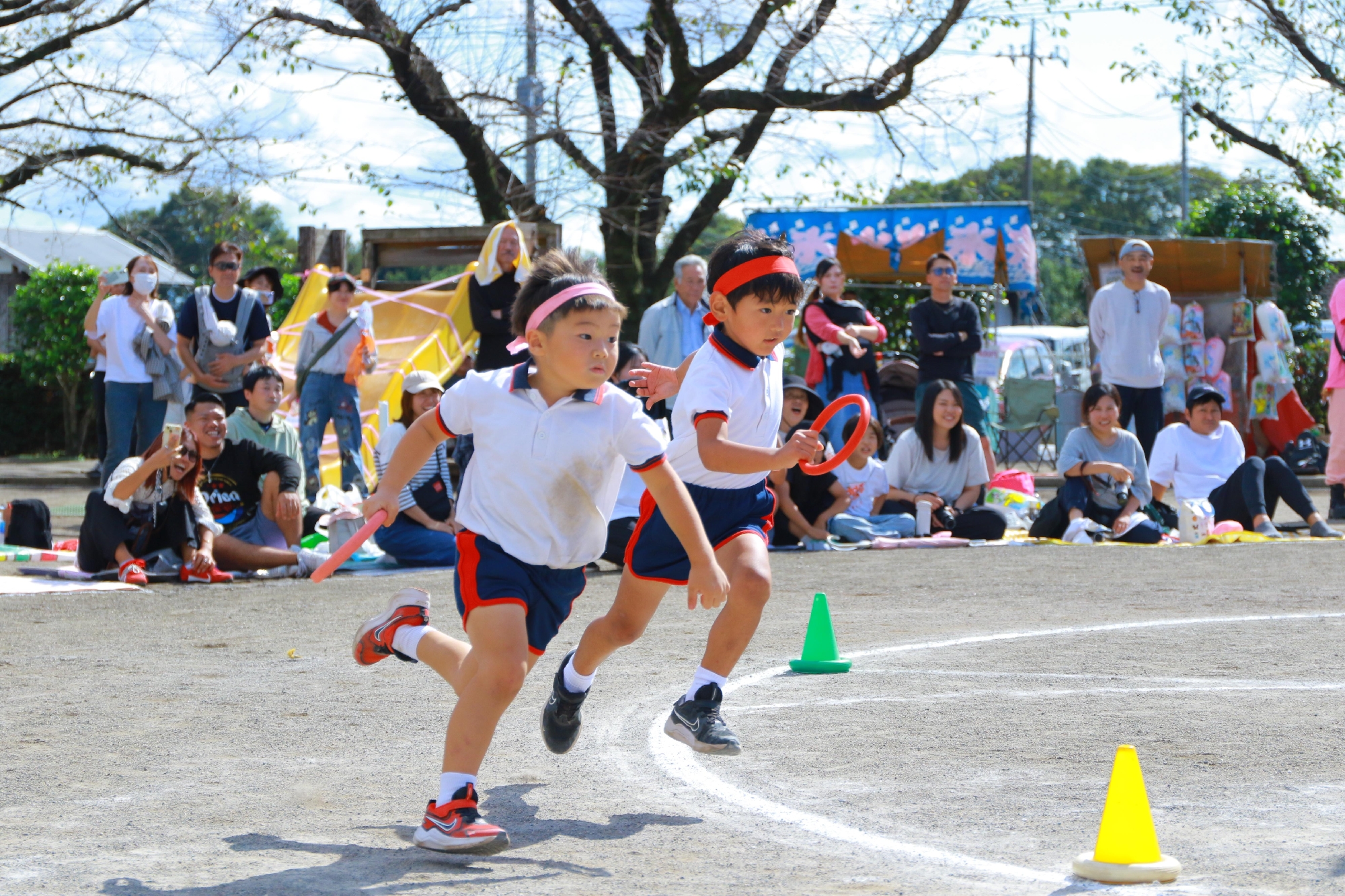 毎年大盛り上がりの「4学年合同クラス対抗リレー」は、今年も園庭いっぱいに応援の声が響き、子どもたちの真剣な表情と全力の走りに会場は大歓声に包まれました✨