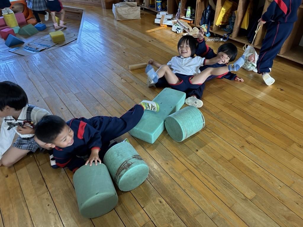 大型ブロックで遊んでいたたんぽぽ組(年中クラス)のおともだち☺