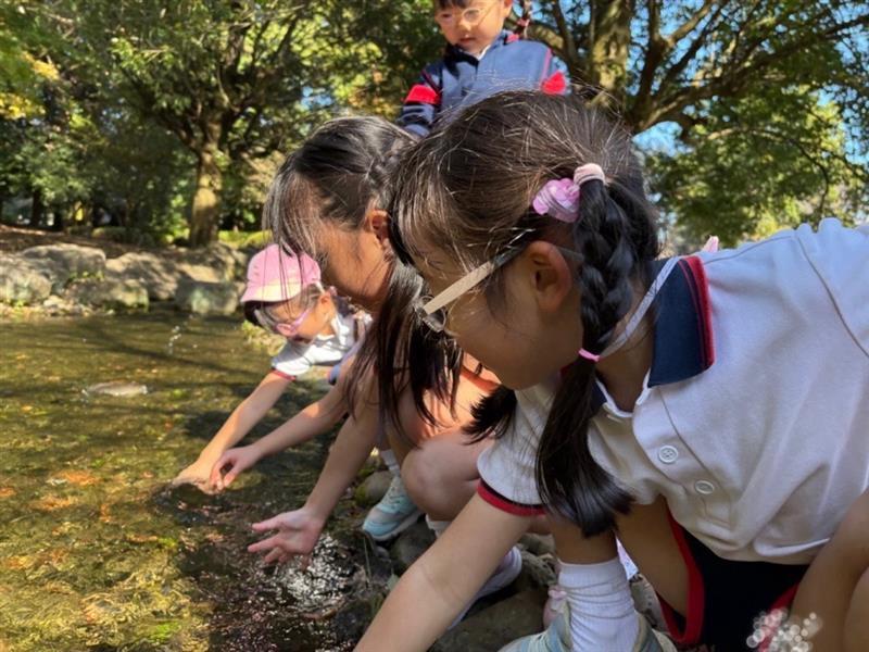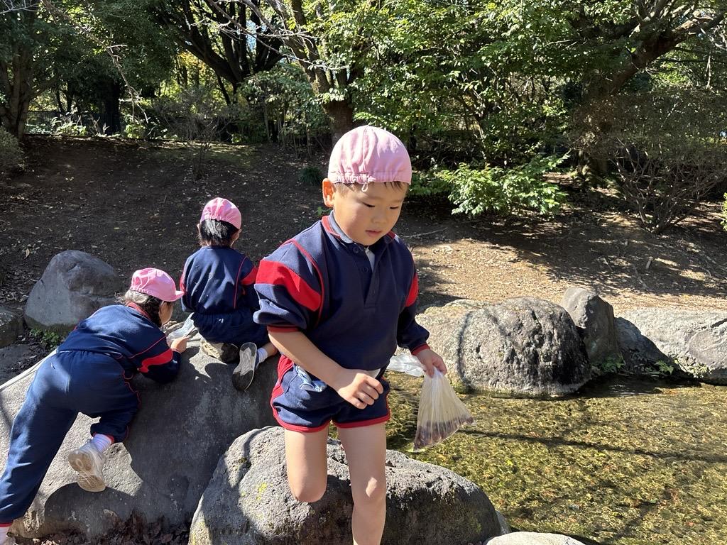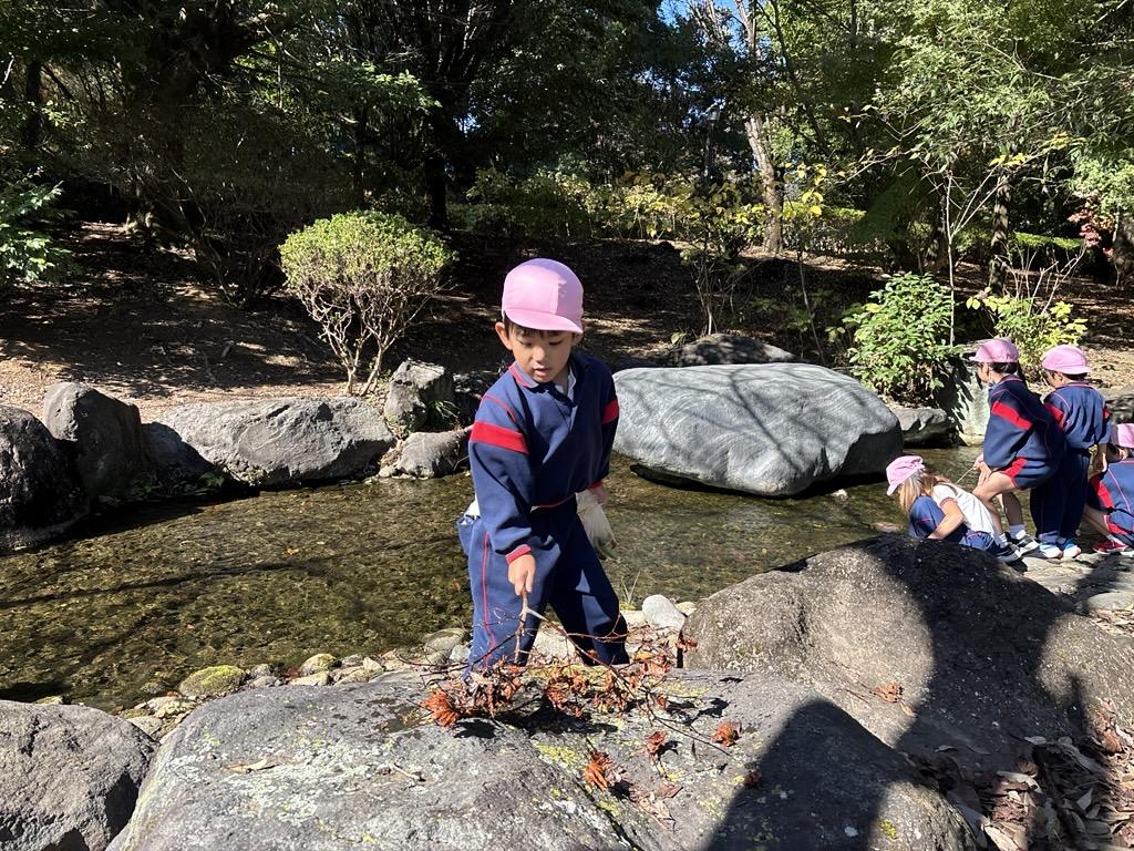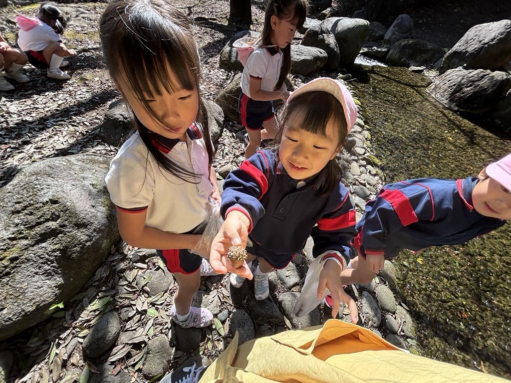 さらに川の中にもどんぐりを見つけて、『取りたい!』と手を伸ばすおともだちも★