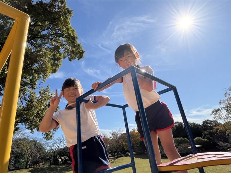 『一緒にくっついて滑ろう♪』と滑り台を楽しんだり、遊具にチャレンジしたりと、おともだちと声を掛け合いながら何度も楽しむ姿が見られました💛