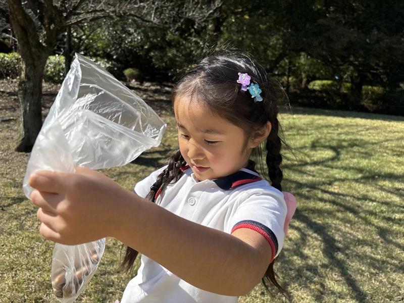 『見て見て~!こんなにたくさんっ!!』『帽子付きの見つけた!』『まぁるいのもあったよ!』と嬉しそうに拾い集める子どもたち☺❤