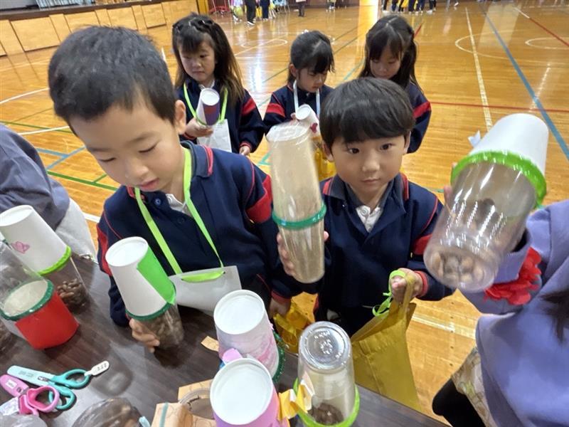 幼稚園に戻ってきてからは、ゆり組のお部屋でどんぐりと爪楊枝を使って”どんぐりこま”を再現して、オリジナルのこまをおともだちと回し合い、『縦に回ったり、横に回ったりするんだよ~🌰!』と、こまの回り方の違いを教師に興奮交じりに伝える姿がありました★
