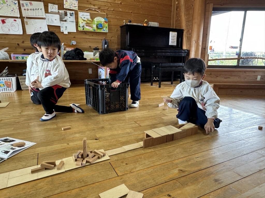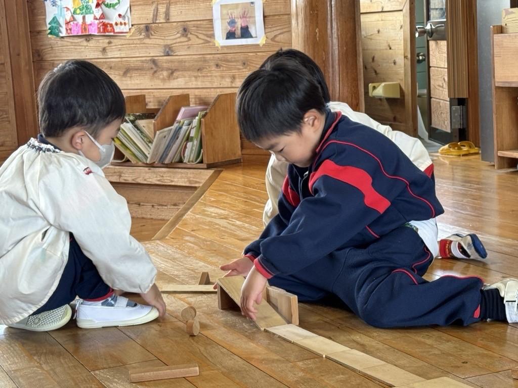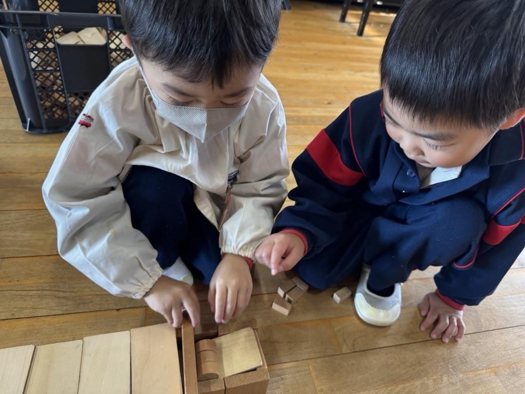 たんぽぽ組(年中クラス)のお部屋を覗いてみると、積み木を使って遊んでいる姿がありました★