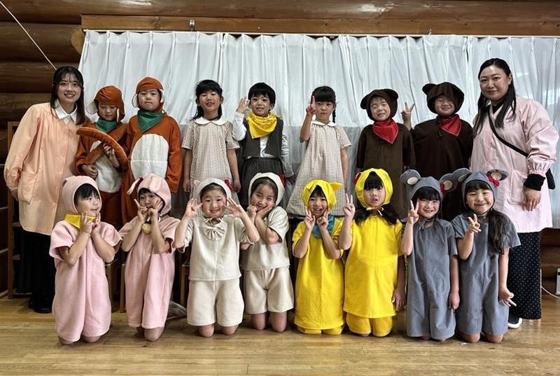 子どもたちと話し合いを重ね、ブレーメンの音楽隊に決定してから、やりたい役を自分たちで決め、セリフや歌を楽しみ、自信がつく頃にはみんながすべての役をできるようになっていました✨