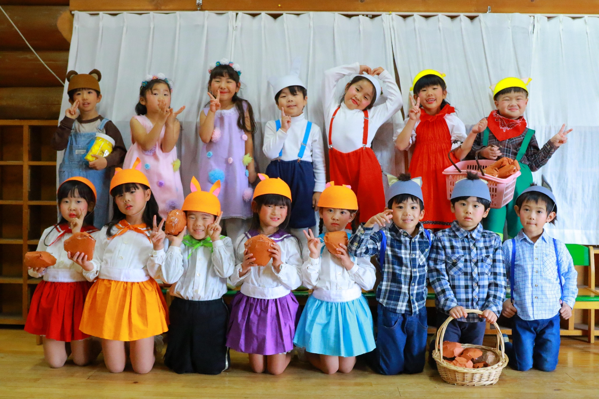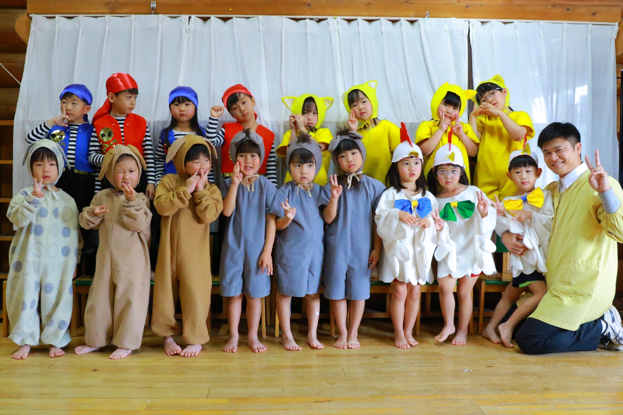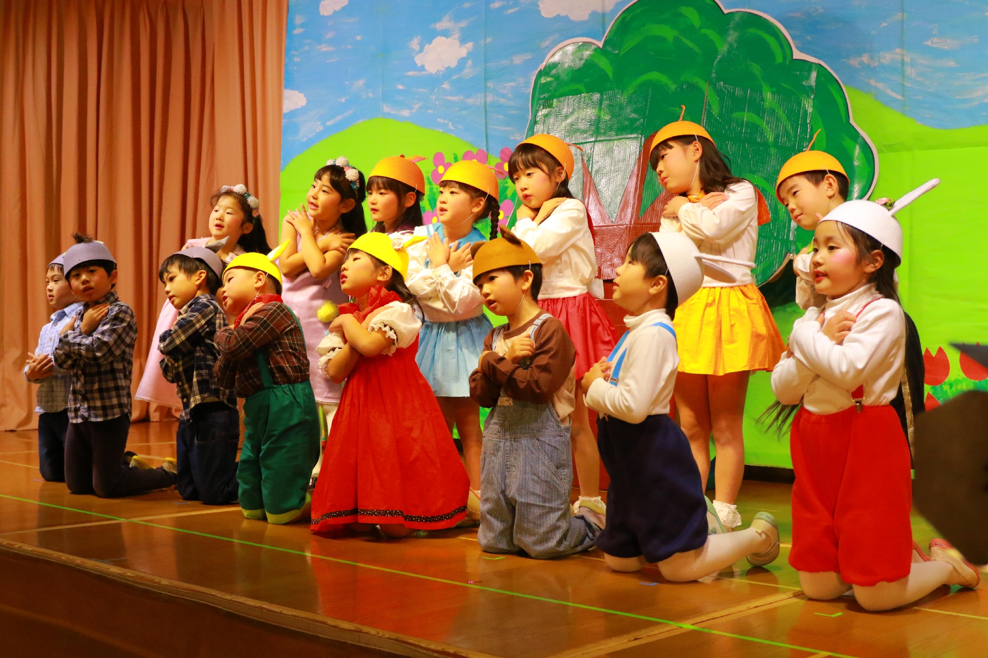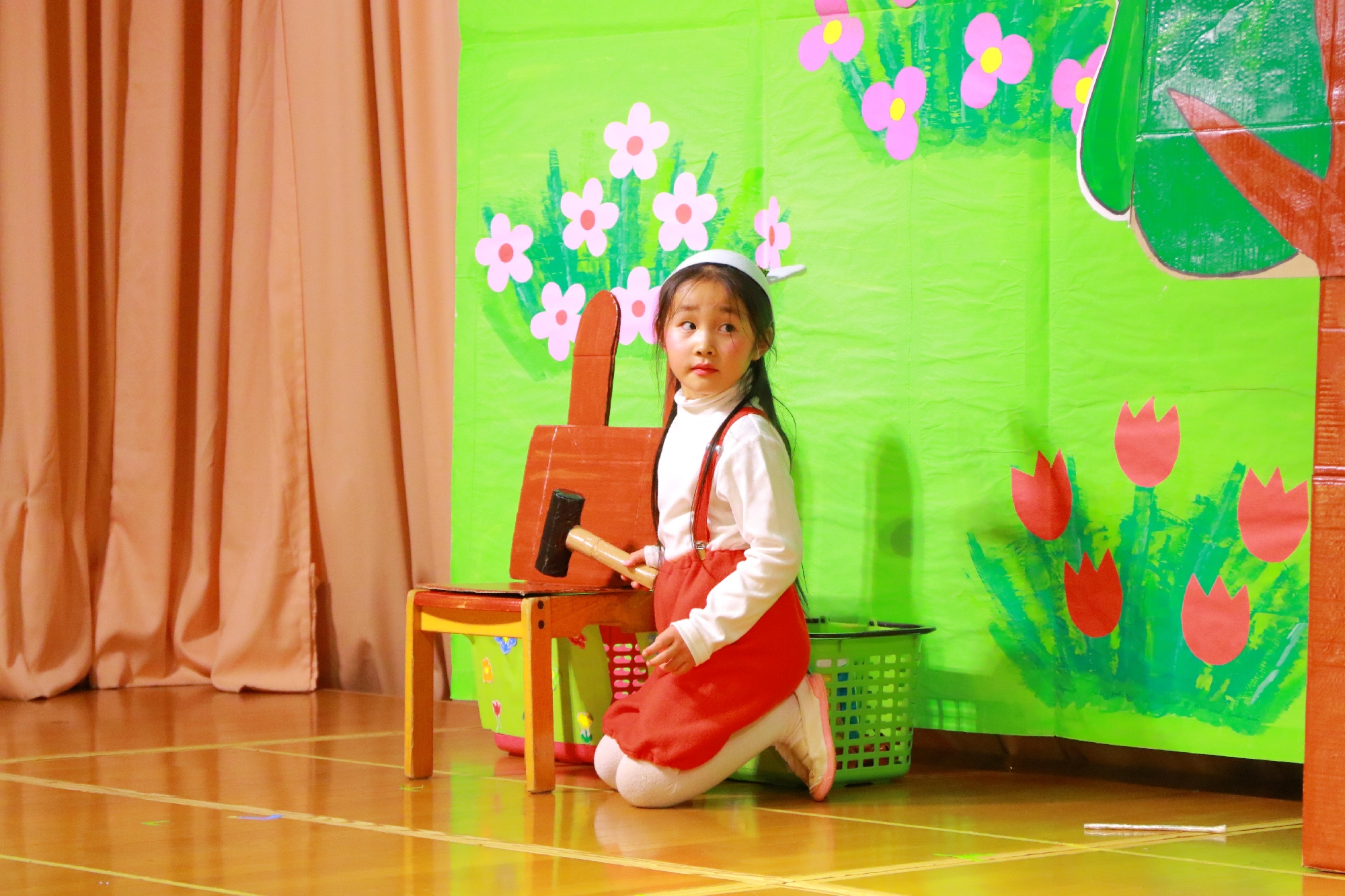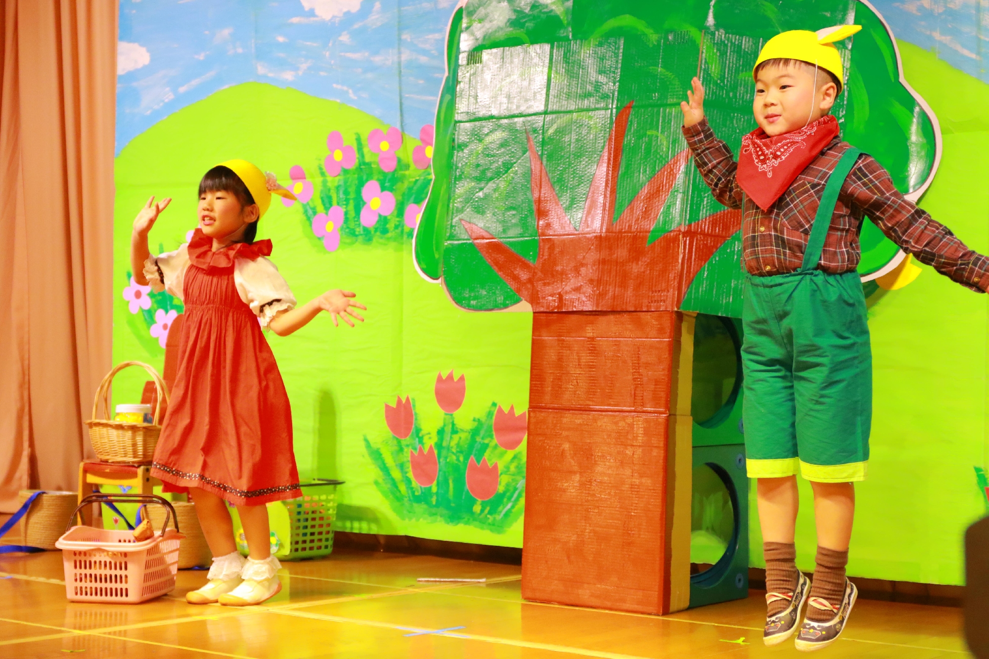 残念ながら体調不良で欠席したおともだちの分を補おうと、ほかの子どもたちが急遽代役を引き受けてくれ、本来とは違う役、違う立ち位置や動き・セリフに戸惑いながらも、お互いに声を掛け合いながら見事演じ切ったゆり1組のおともだちは、とても素晴らしかったです✨
