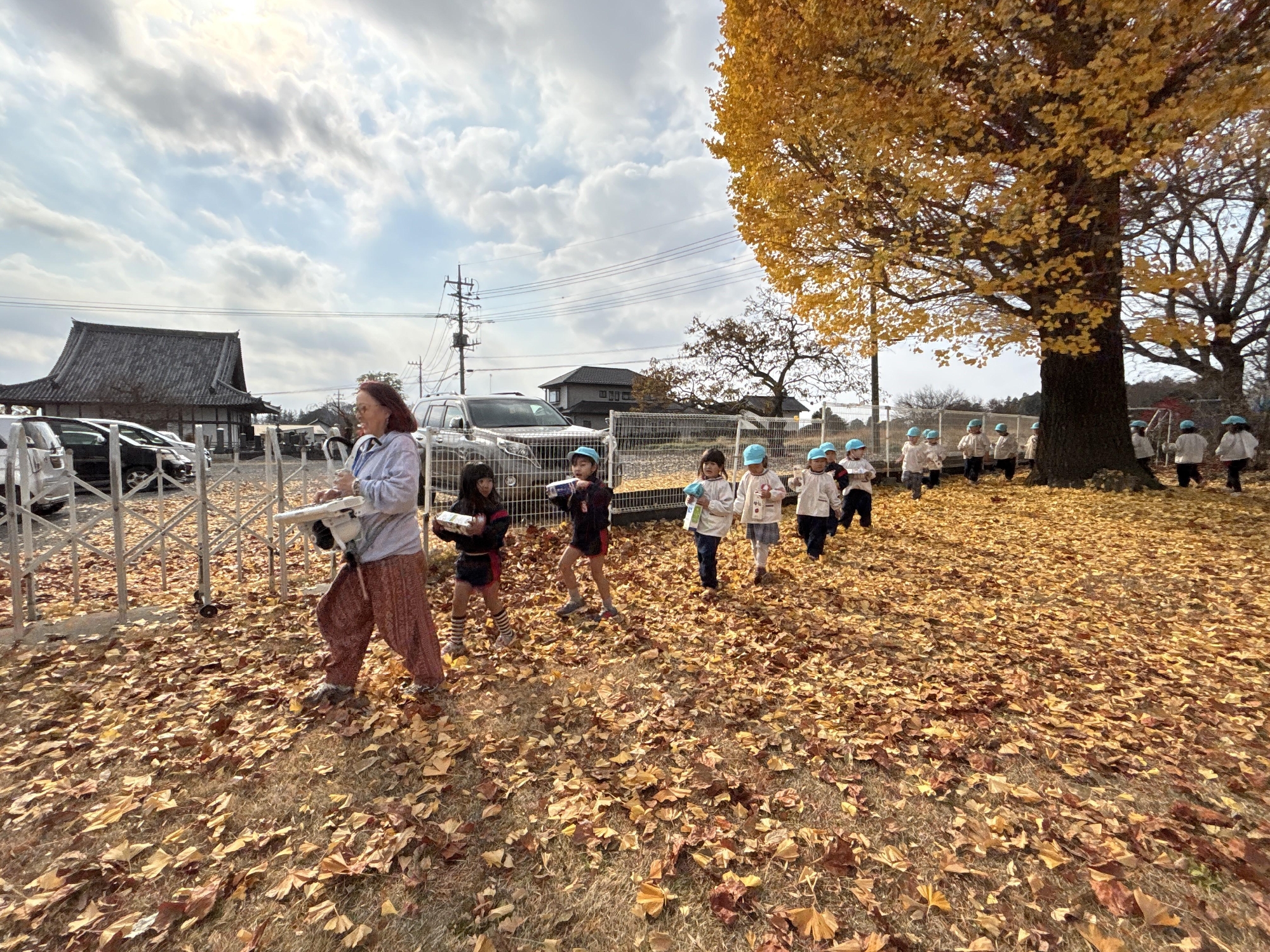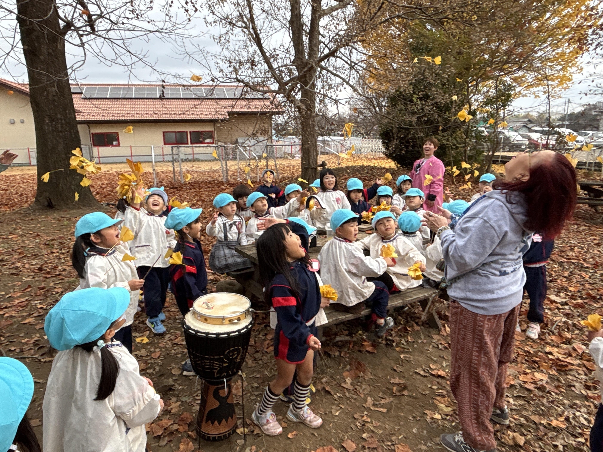 ひらひらと舞い落ちる黄色の葉に、子どもたちの笑顔も満開💛