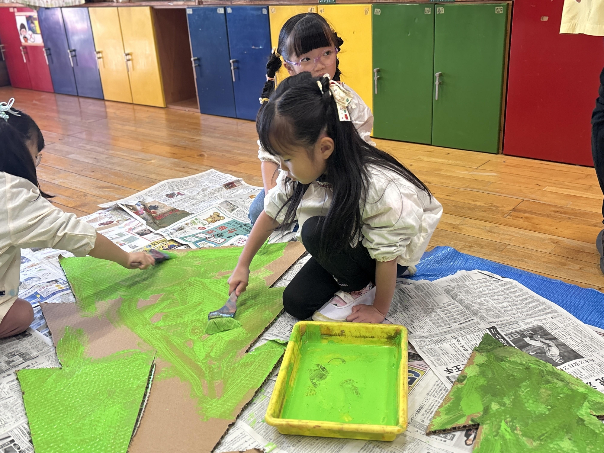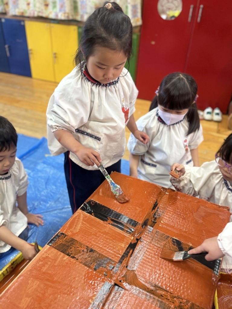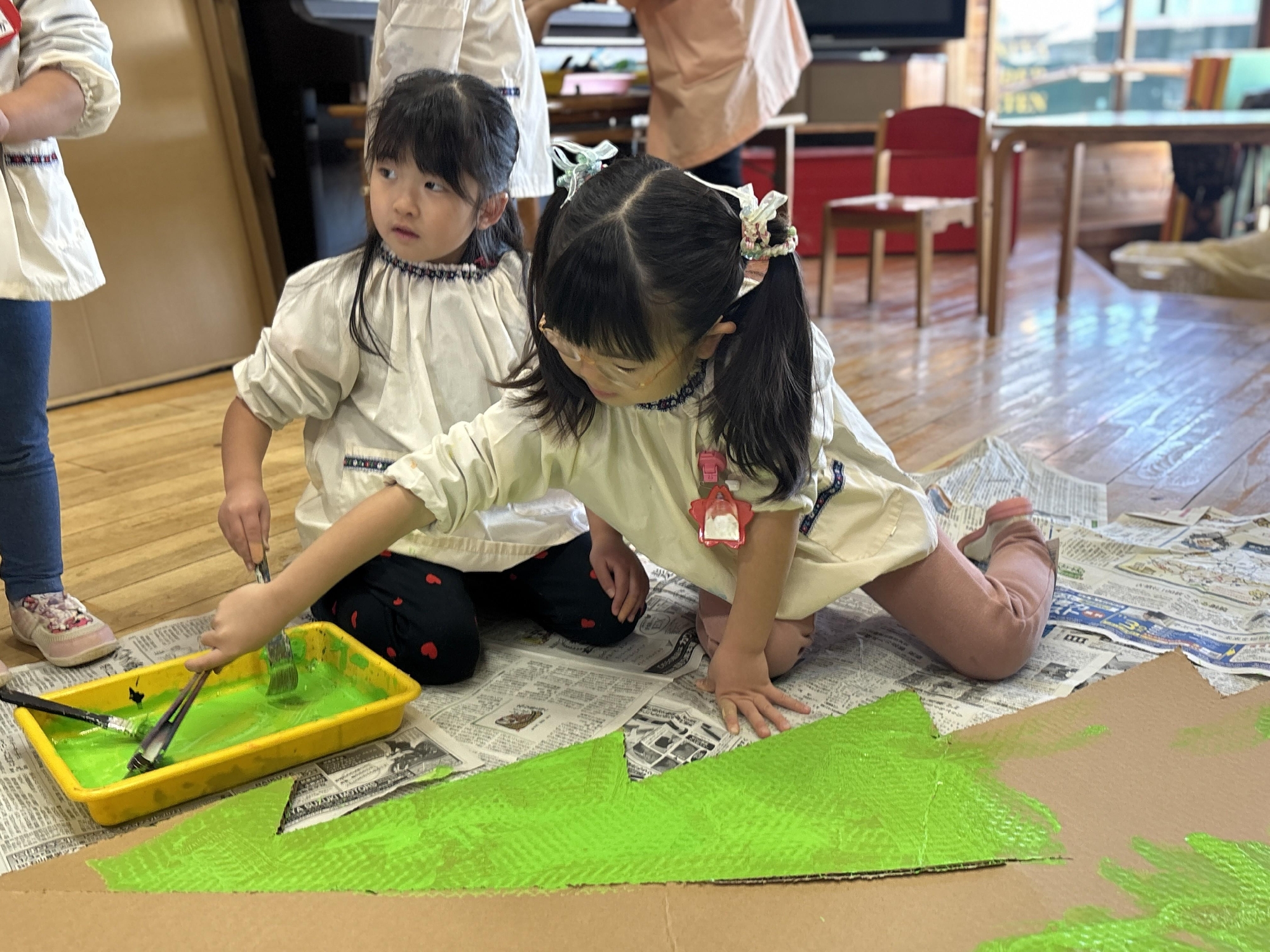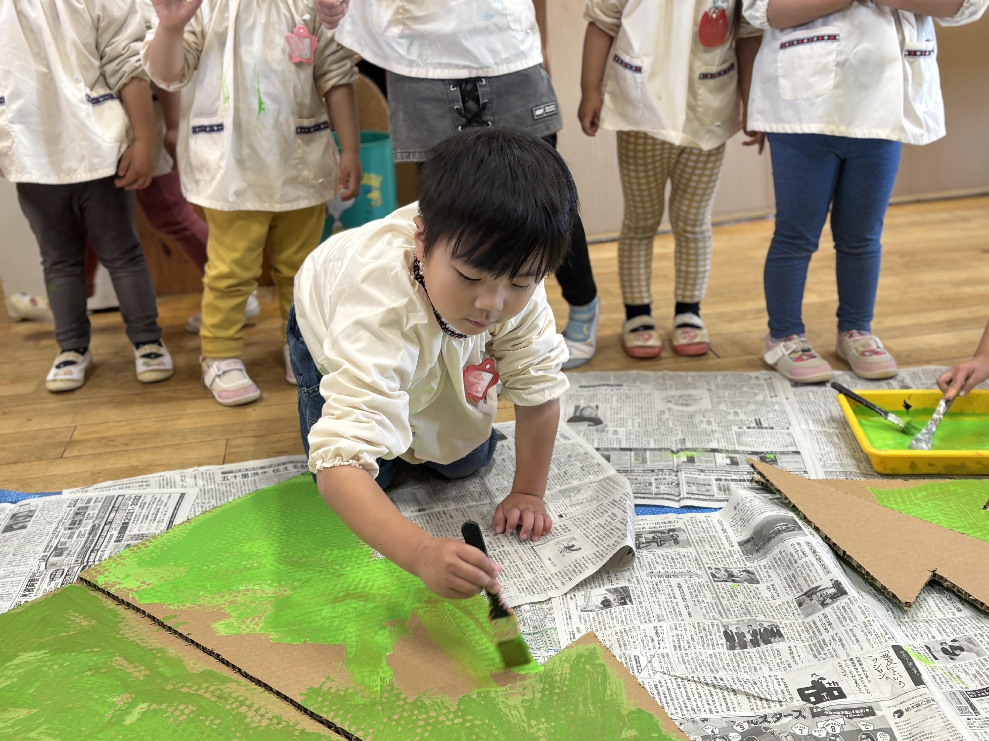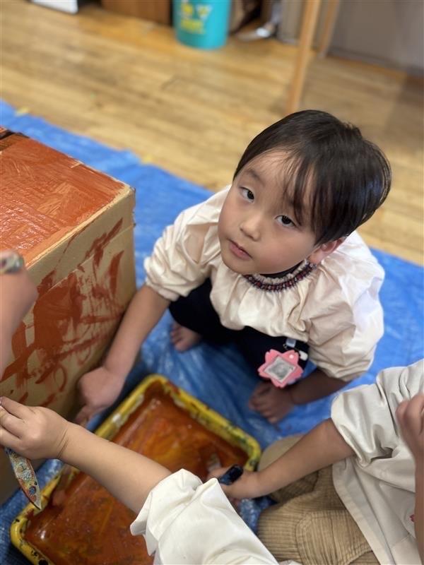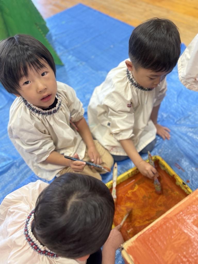 急遽、絵の具と大きな刷毛を用意すると、子どもたちは大喜び☺