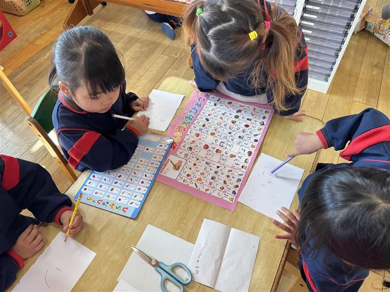 れんげ組(年少クラス)のおともだちも、ひらがな表を見ながら一生懸命お手紙を書く姿が見られるようになり、とても微笑ましいです☺❤
