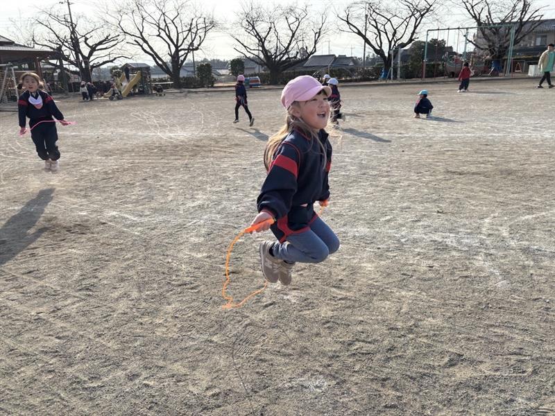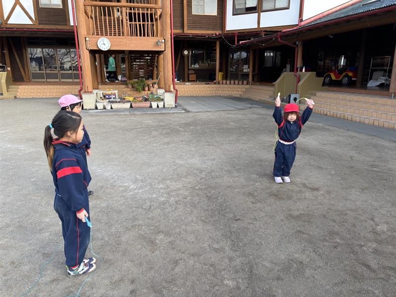 また、ゆり組(年長クラス)のおともだちが縄跳びをしている姿を見て、れんげ組・たんぽぽ組(年中クラス)のおともだちも「やってみたい!」と初めて縄跳びに挑戦する姿も見られるようになってきました★