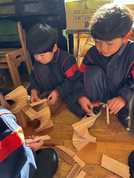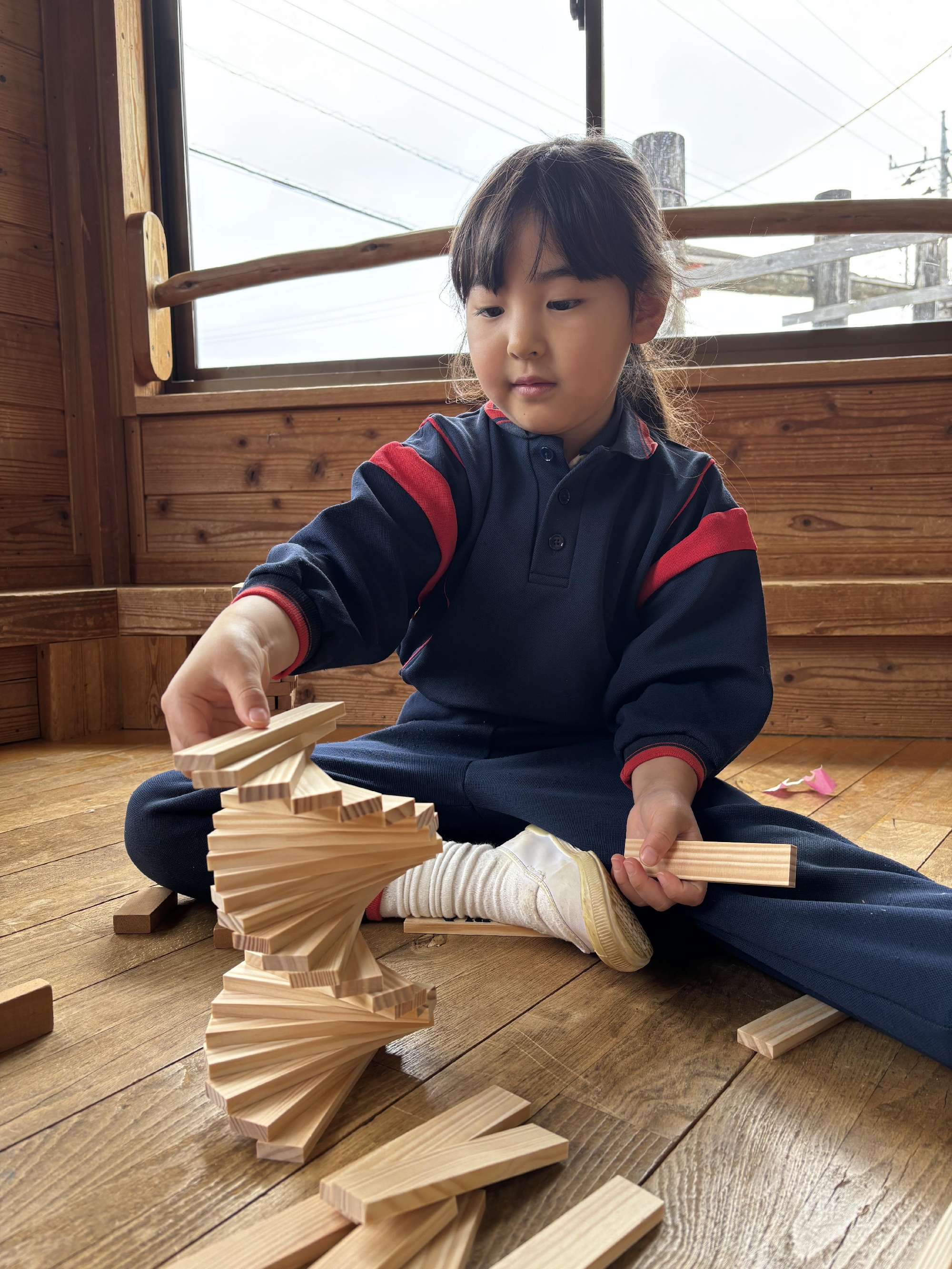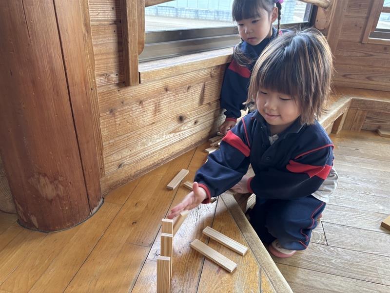 「そーっとね」「まだ倒さないよ」と声を掛け合いながら、集中して並べる姿がとても微笑ましいです☺❤