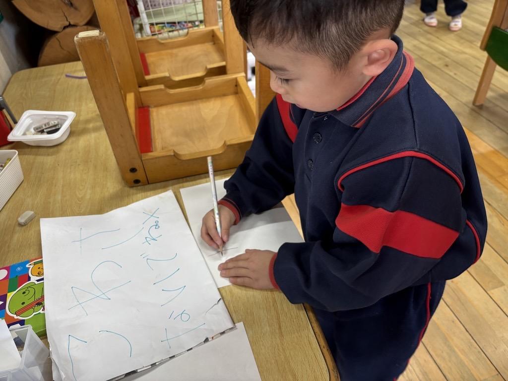教師と一緒に文字を書きながら、「こうやって書くんだね!」と一画一画確かめながら、丁寧に書き上げることができました✨