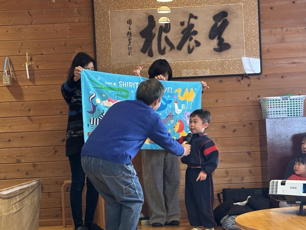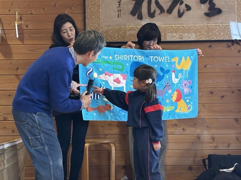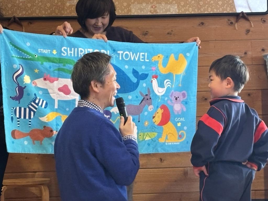 タオルに描かれた市原先生の可愛らしい絵を見ながら、次々としりとりをつないでいく子どもたちの姿に、会場は笑顔と拍手に包まれました☺👏