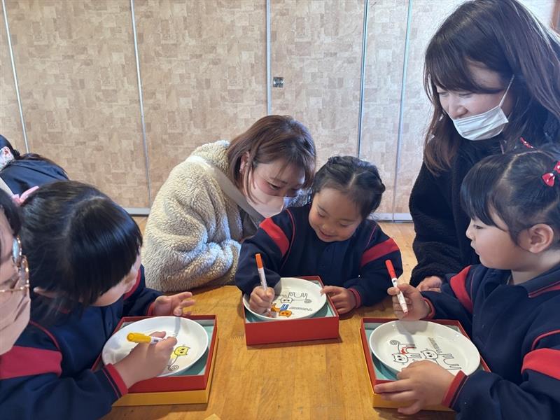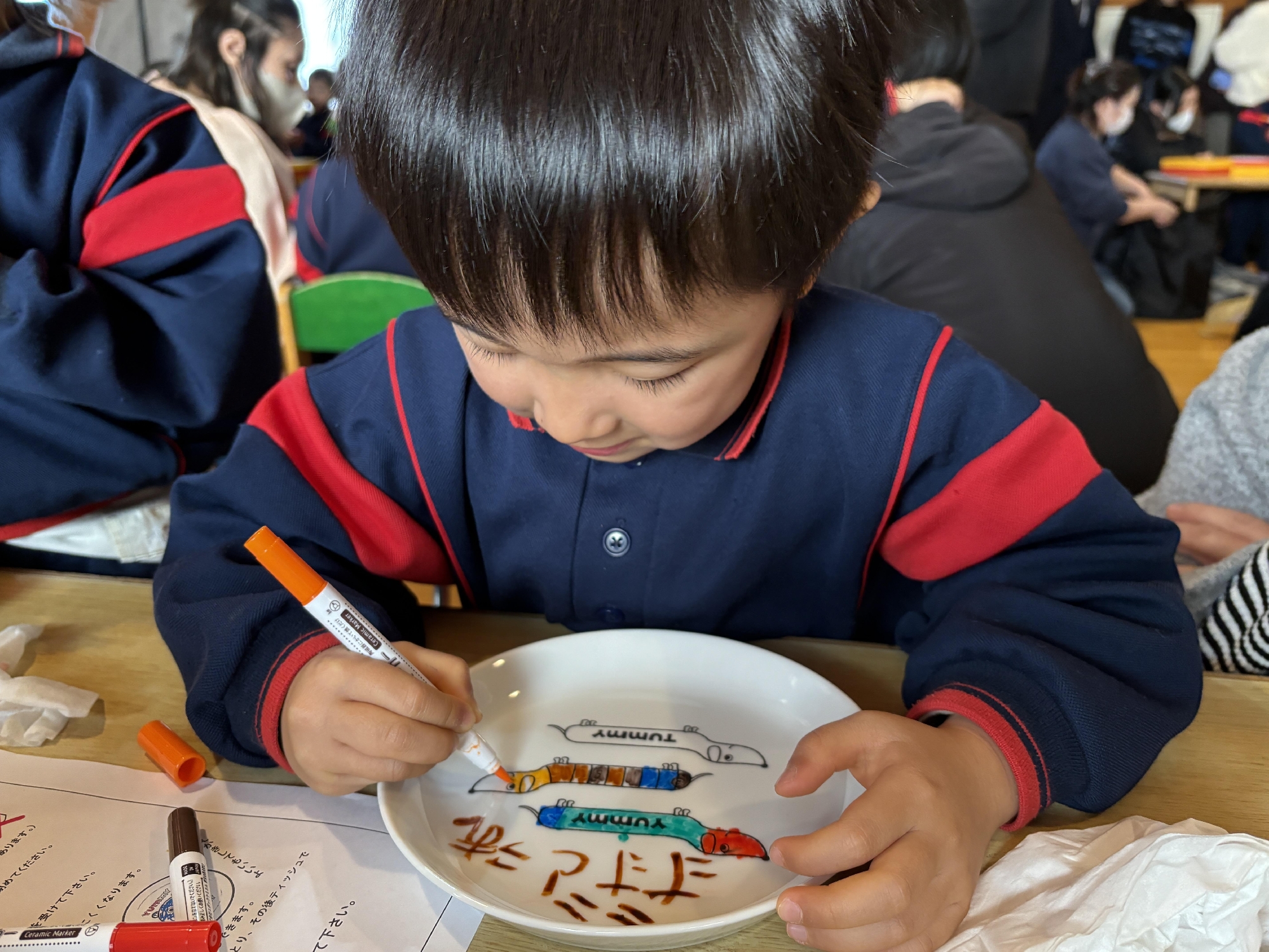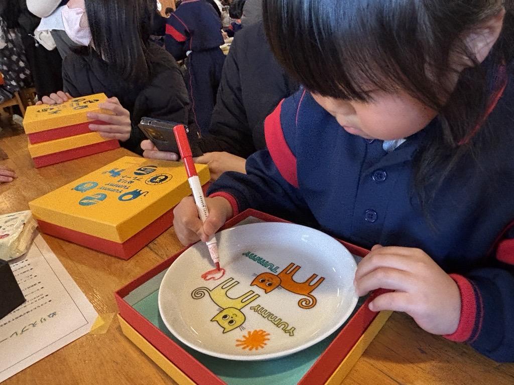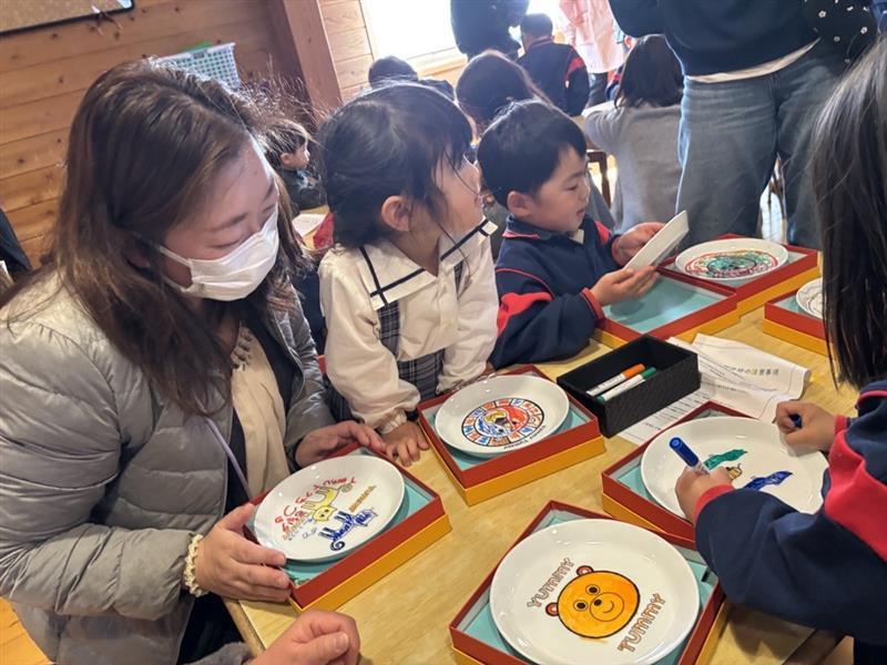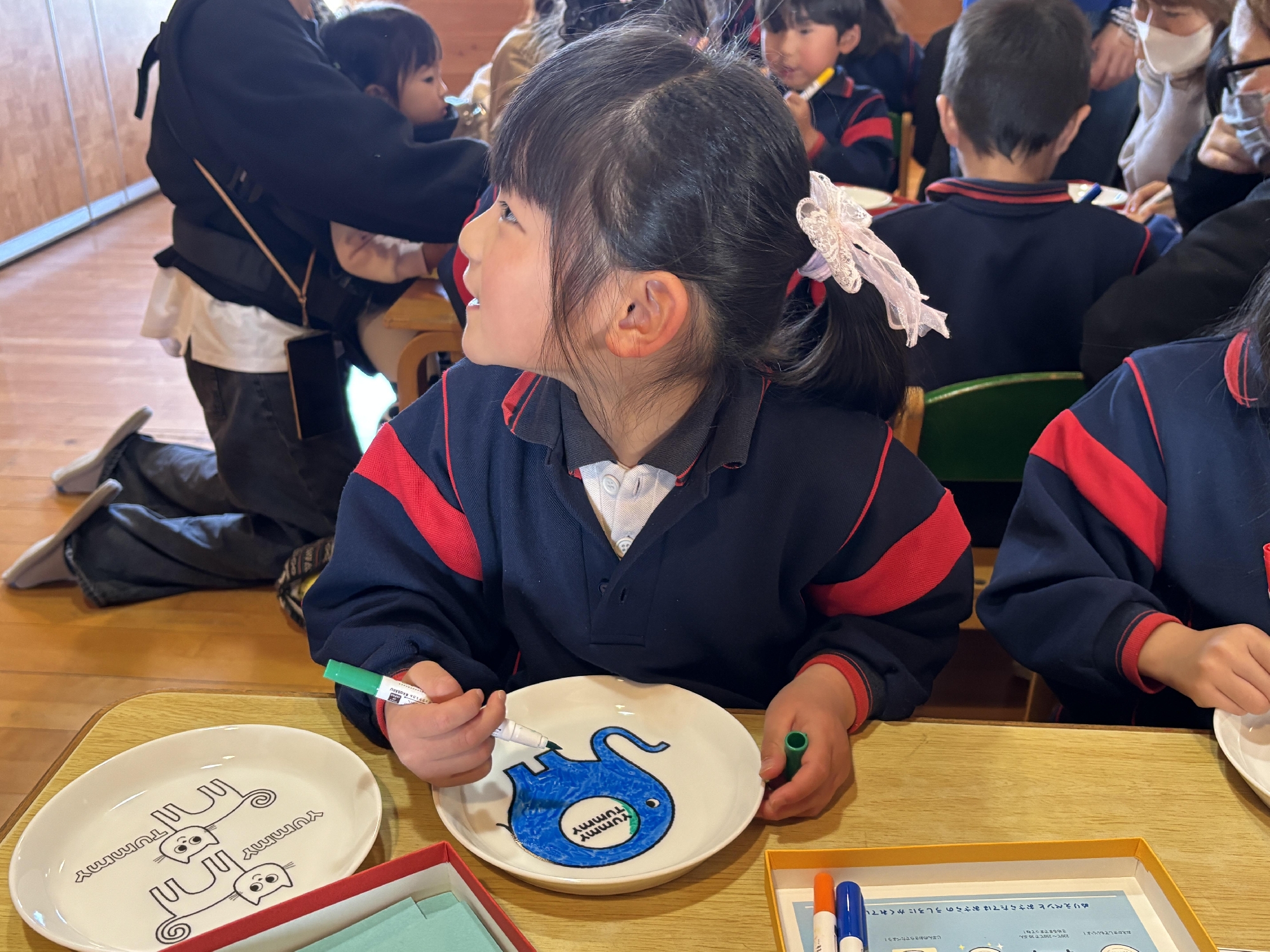 空いている余白に模様や絵を描き加える姿も見られ、まさに世界にひとつだけのオリジナルプレートが完成しました✨